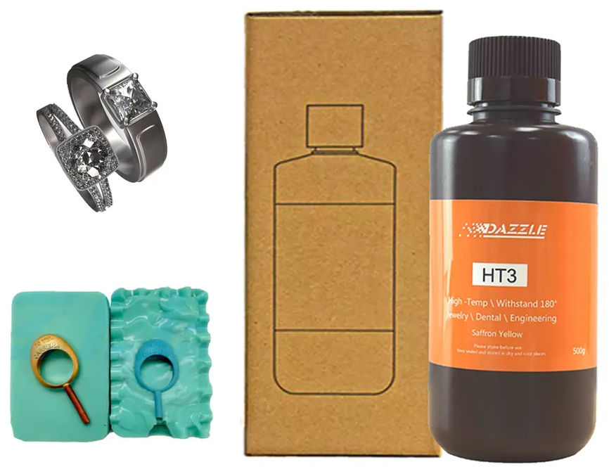 Saffron Yellow High Temp 405nm 3D Printer Resin for Jewelry Casting Molds for DLP and LCD