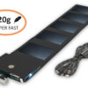 - Superfast solar charge: 3 hours in the sun to charge a cell phone (4 watts)