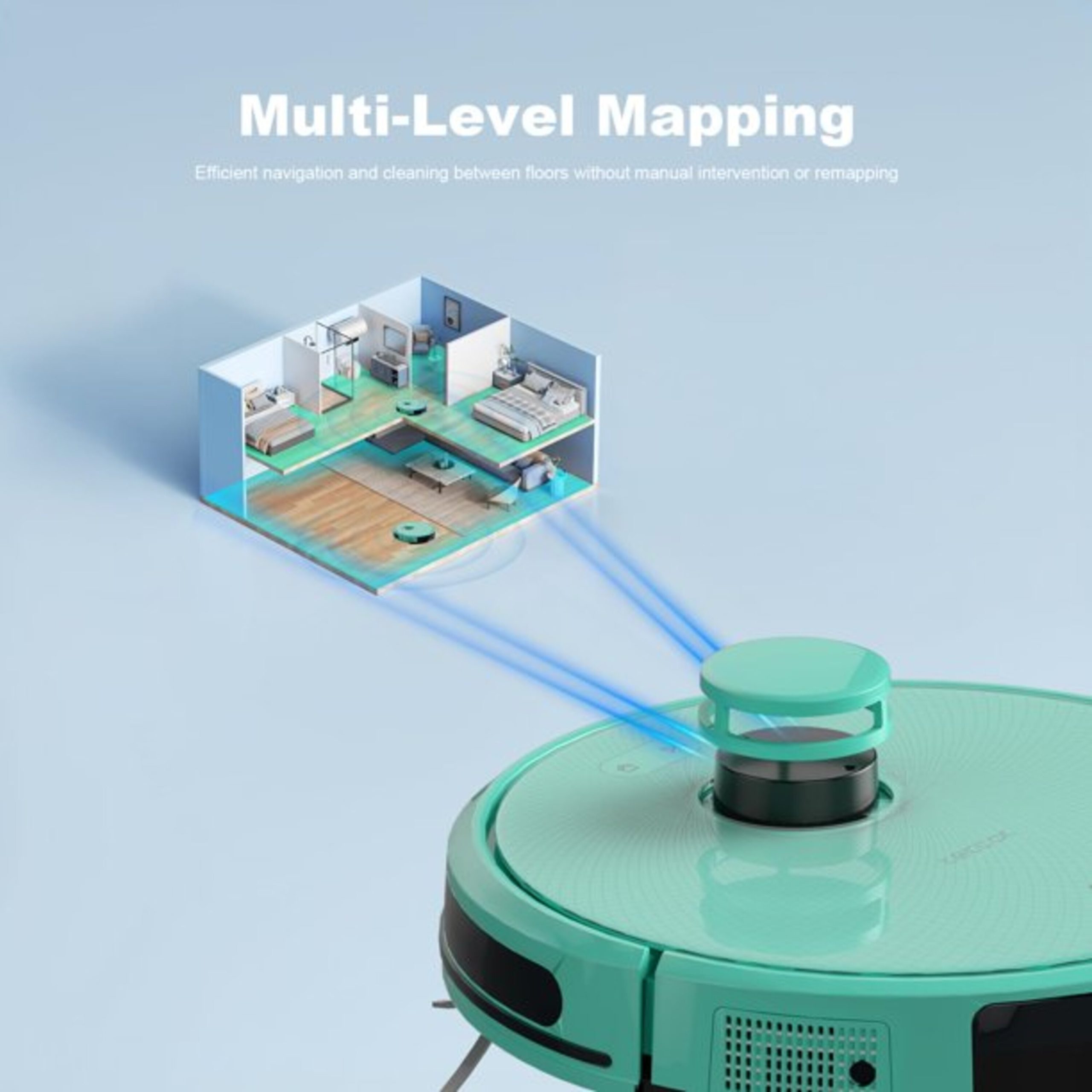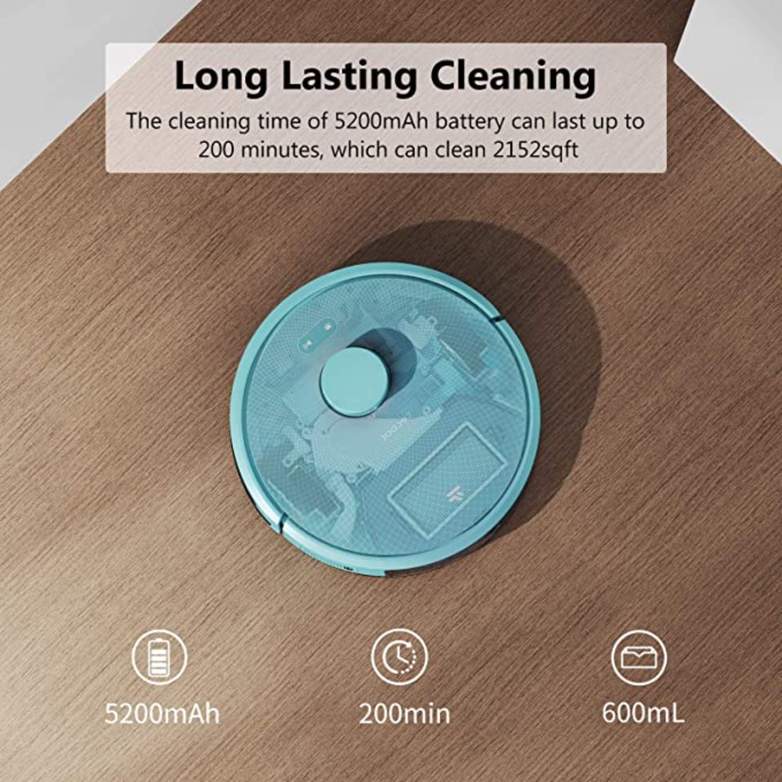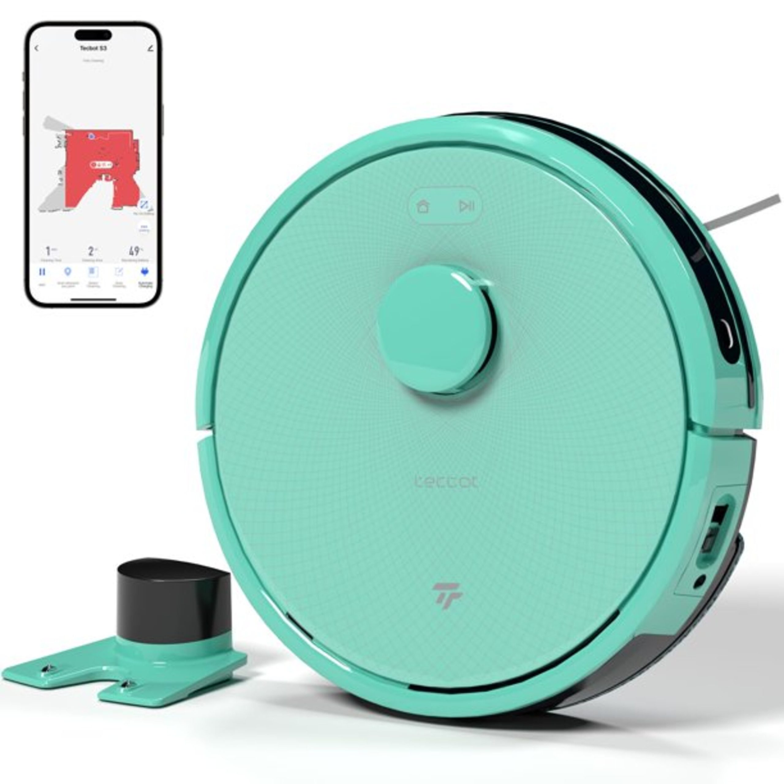 The Tecbot S3 Pro is equipped with laser detection navigation to help search for accurate and precise pathways. It avoids obstacles and has fall prevention technology. Includes Wi-Fi and a mobile app for customized cleaning preferences. Equipped with 29 sensors, virtual perimeters, scheduled cleanings and remote programming. Compatible with Amazon Alexa and Google Assistant.
