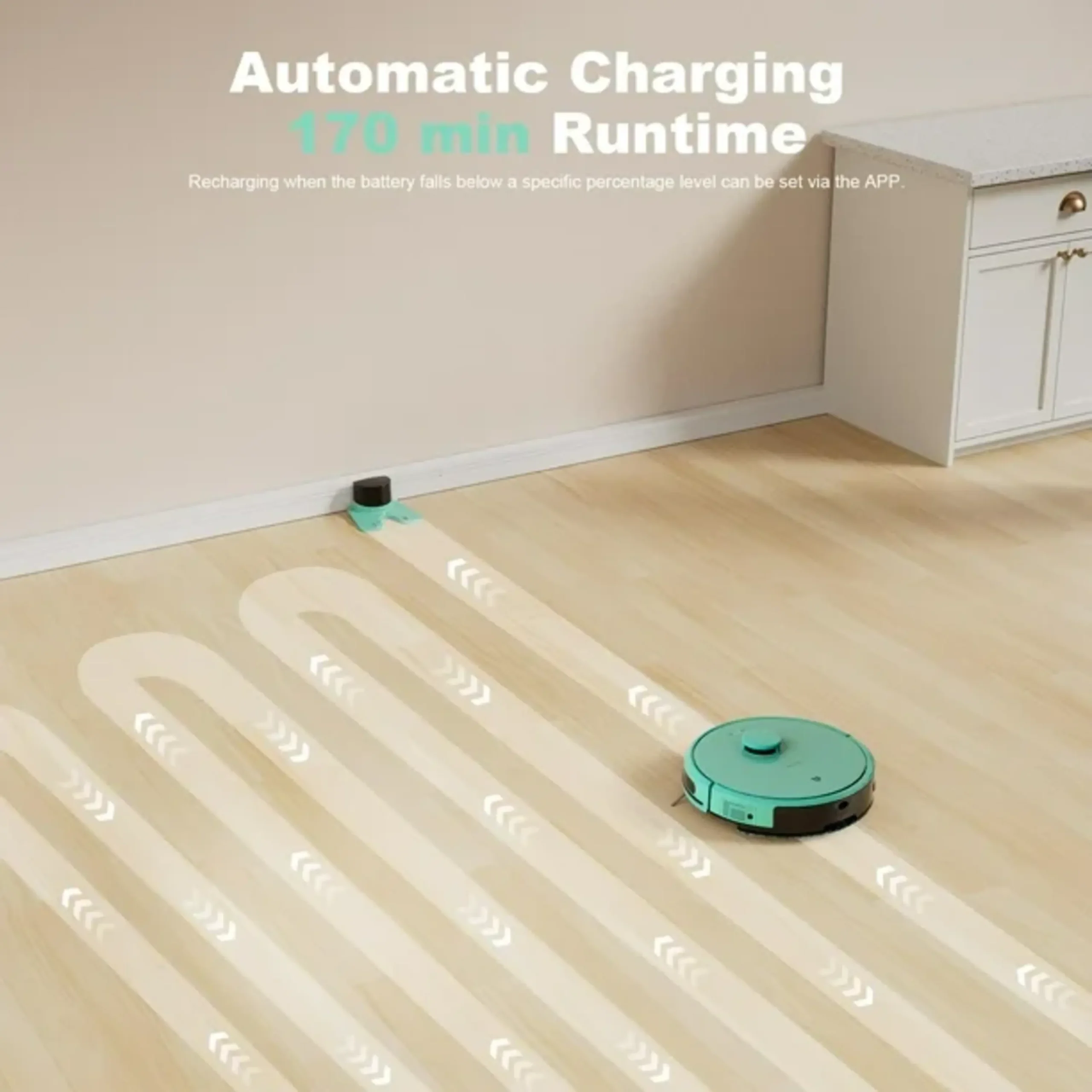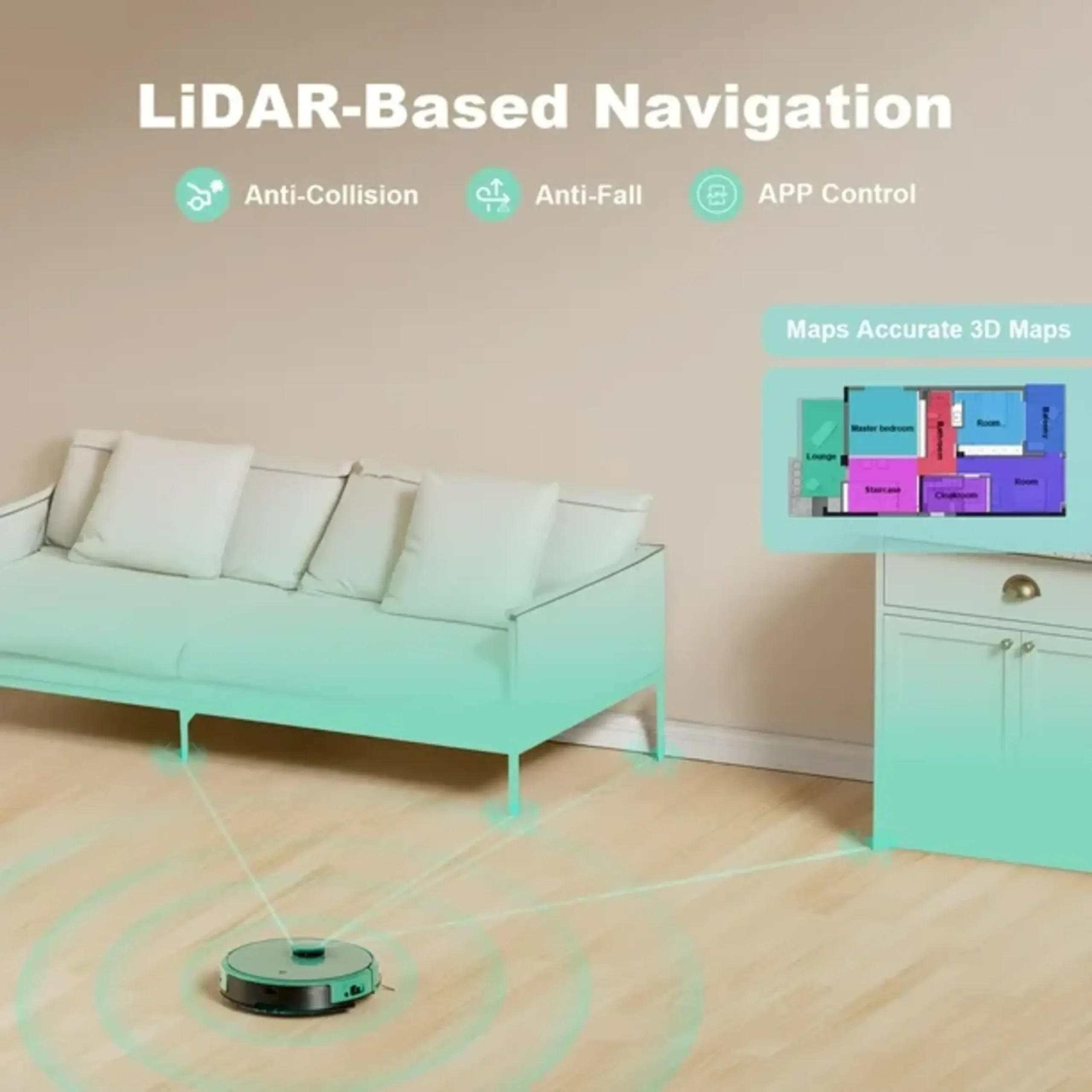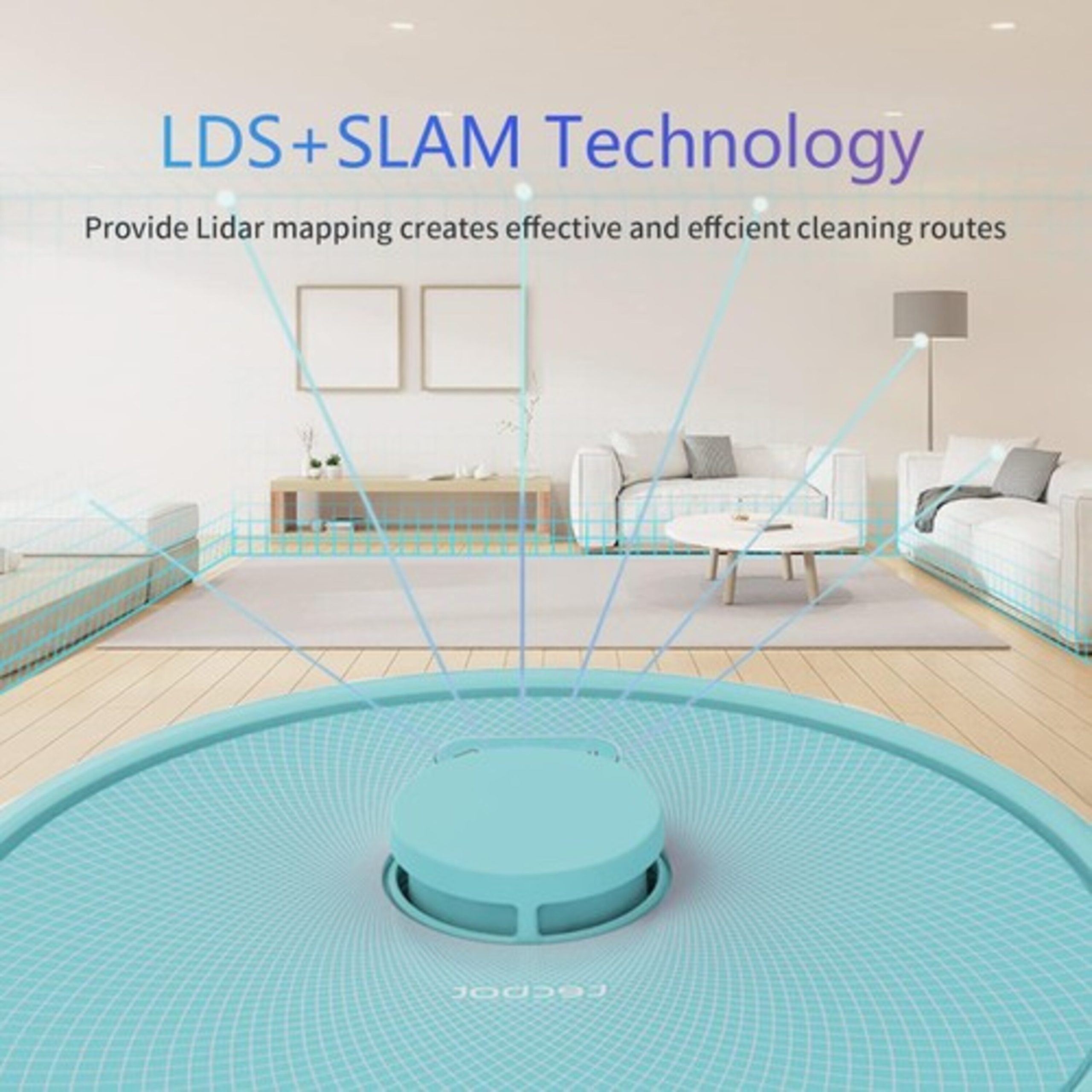The Tecbot S3 Pro is equipped with laser detection navigation to help search for accurate and precise pathways. It avoids obstacles and has fall prevention technology. Includes Wi-Fi and a mobile app for customized cleaning preferences. Equipped with 29 sensors, virtual perimeters, scheduled cleanings and remote programming. Compatible with Amazon Alexa and Google Assistant.