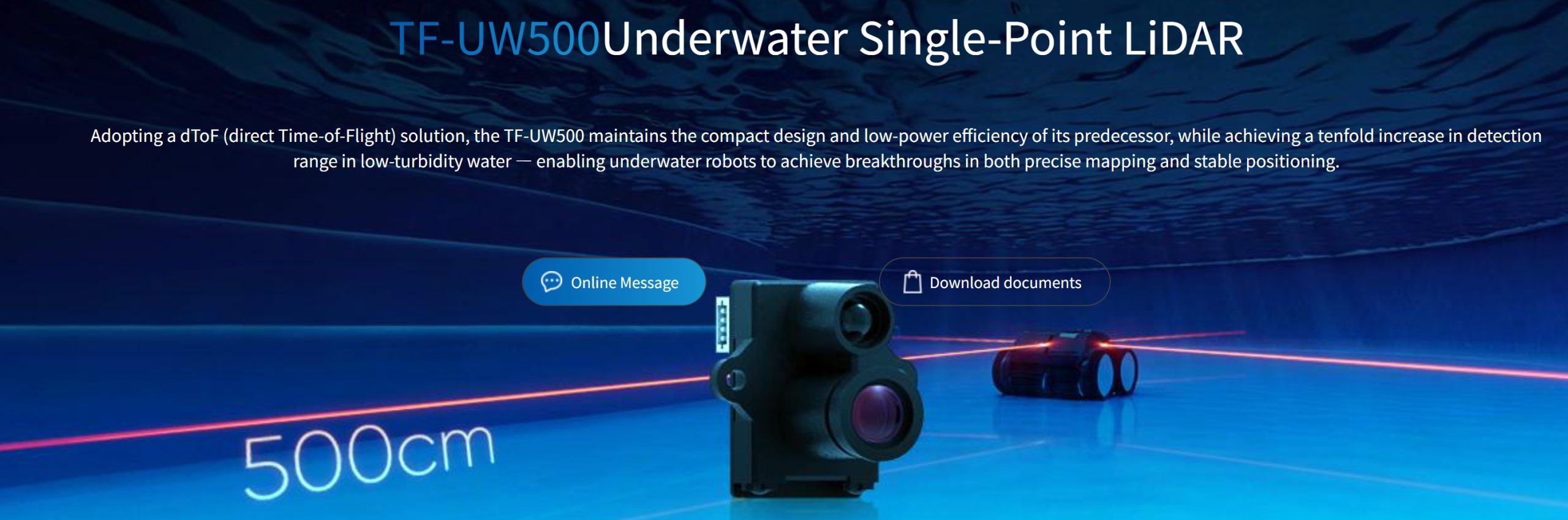 TF-UW500 Underwater LiDAR Sensor for Robotics and IoT