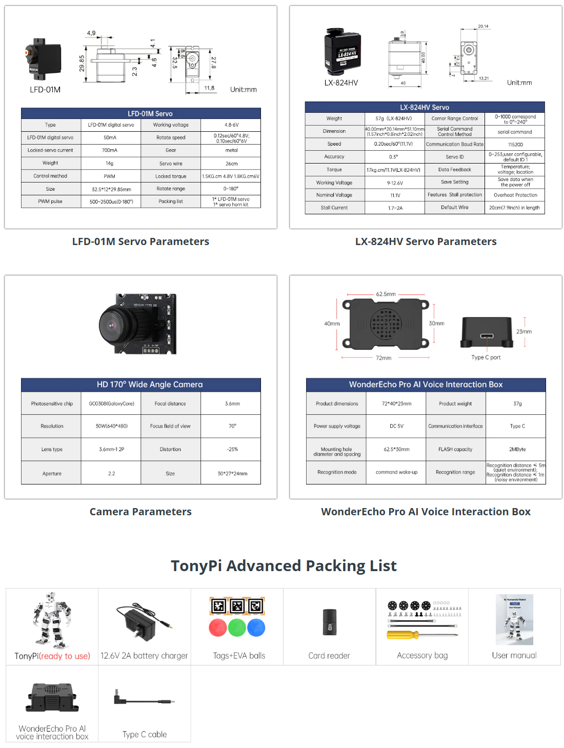 Supplier: Hiwonder SKU: Hiwonder TonyPi Advanced Kit with Raspberry Pi 5 8GB Categories: , , , , Tags: , , , , More From: