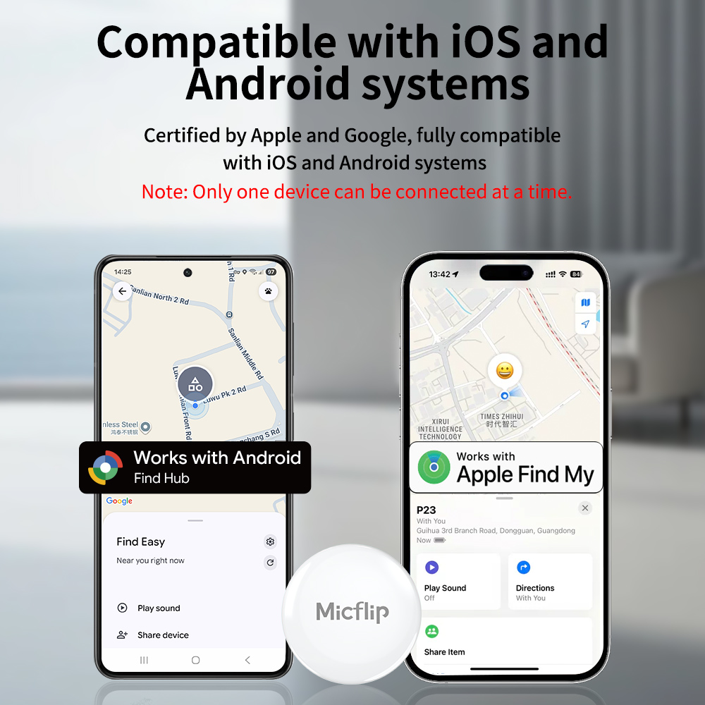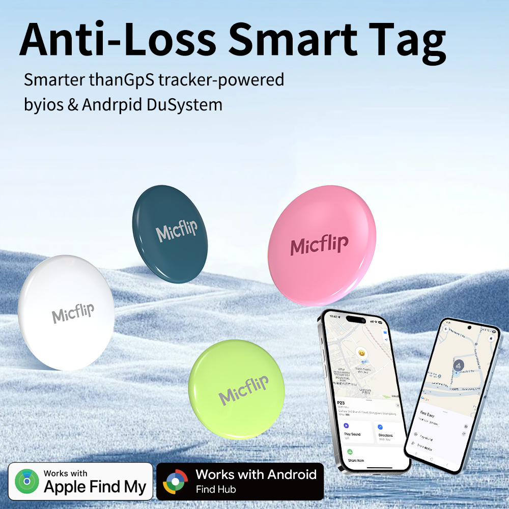 Dual System Find My Find Hub Mini Tag Tracker – Micflip P23 is an iOS and Android dual system Bluetooth 5.1 Low Energy smart tag that works with Apple’s “Find My” App and Google’s “Find Hub” App.