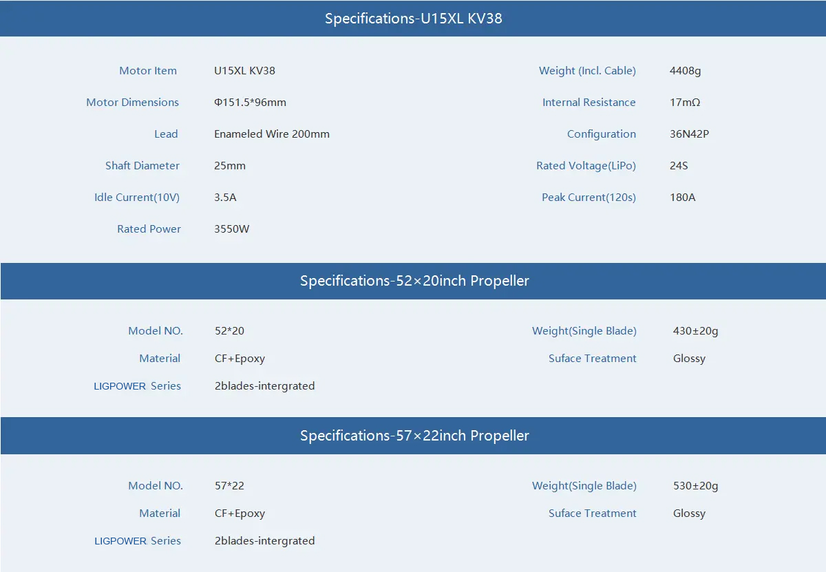 We provide high-level thrust motors, ESCs, and propellers for industrial UAVs or manned propulsion. This eliminates the need to find different suppliers, ensures flight safety, and guarantees a convenient after-sale process. The maximum thrust is up to 100 kg.