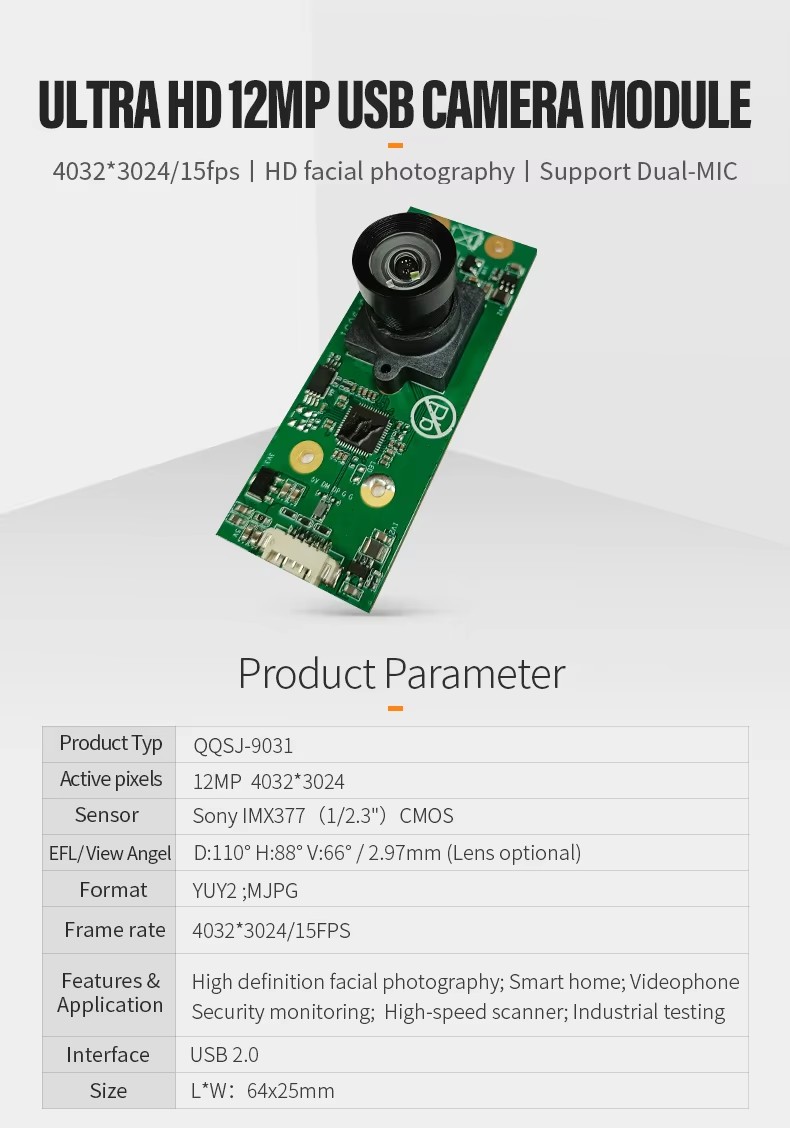 Features and Applications: High-definition facial photography, Smart home, Videophone, Security monitoring, High-speed scanner, Industrial testing.