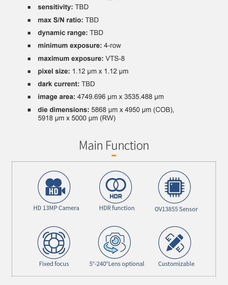 - Sensor: OV13855(1/3.06″)CMOS