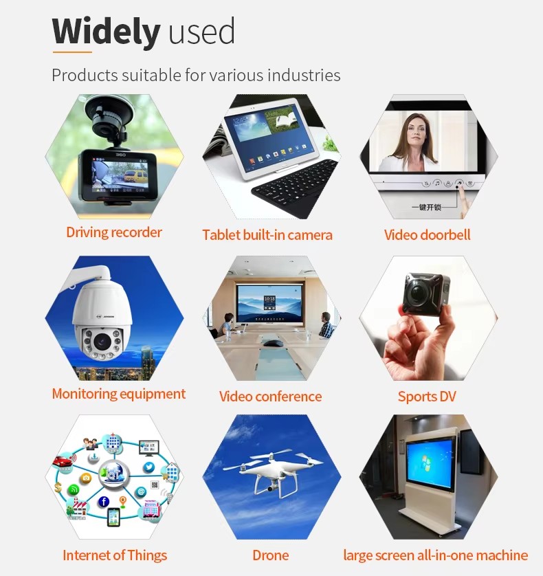 Features and Applications: Tablet/Laptop Camera; Smart Home, Sports DV/Drone Video Conferencing, Internet of Things, Surveillance