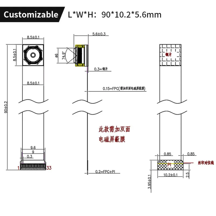 - Size: L*W*H:90*10.2*5.6mm(8.5*8.5mm module head)