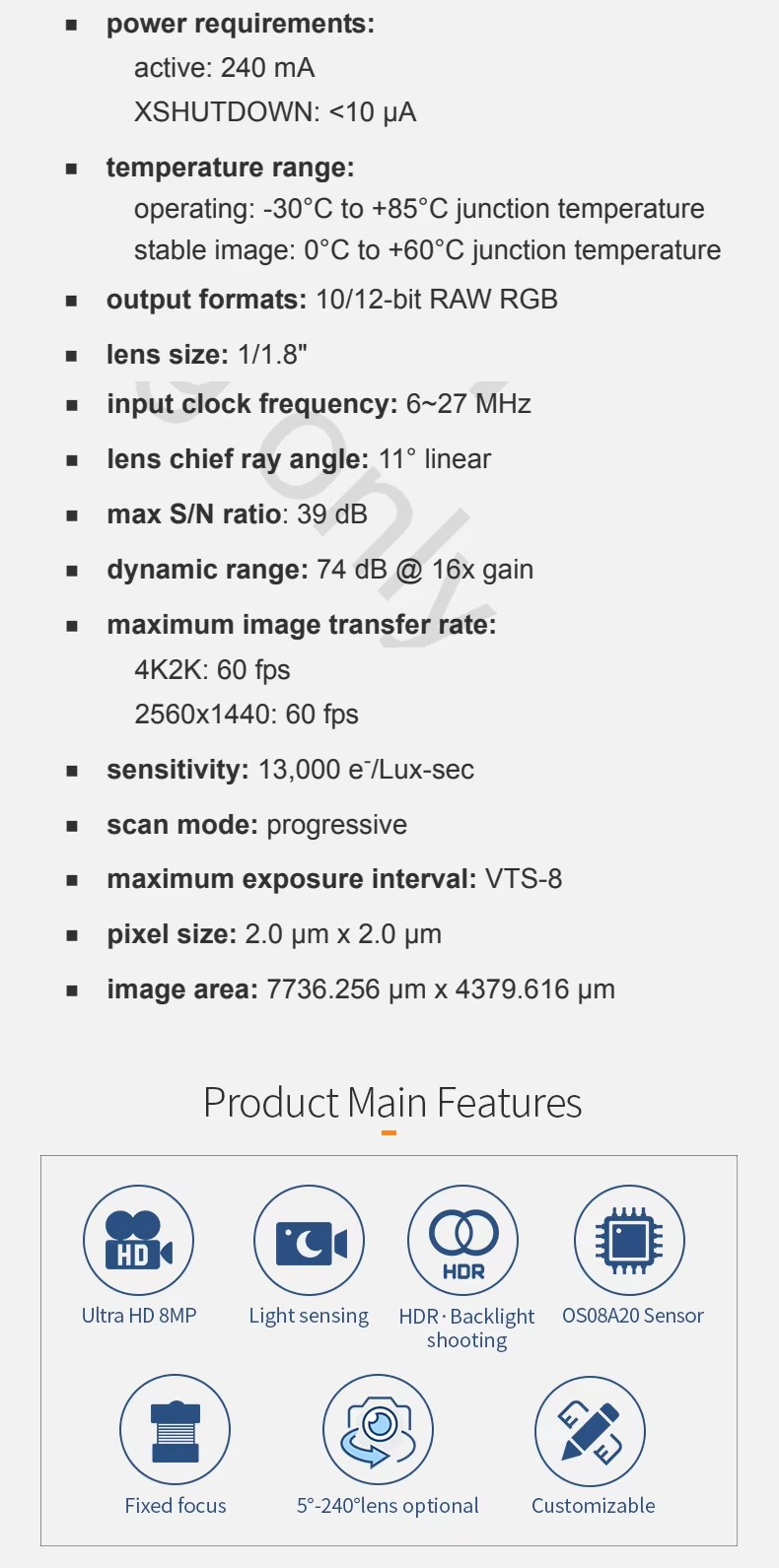 DGZX MIPI 8MP 4K2K 60fps HDR Wide Angle Camera Module