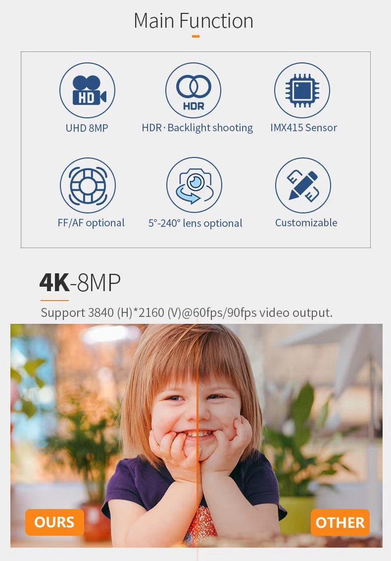 - Sensor: SonyIMX415(1/2.8″)CMOS