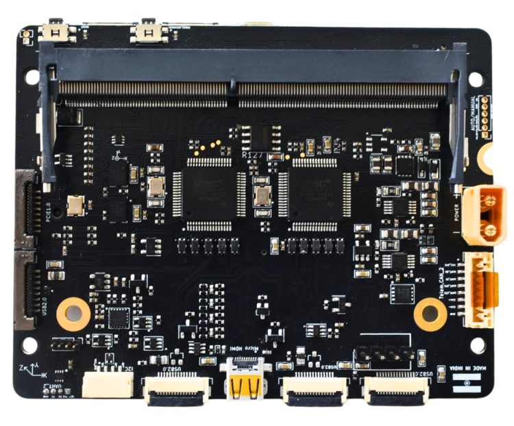 - Rich I/O for Robotics and Vision: Includes USB 3.0 (FPC), 6x USB 2.0, Gigabit Ethernet, 12-lane CSI (via daughterboard), Micro HDMI, CAN, I2C, UART, SPI, GPIO, and PWM.