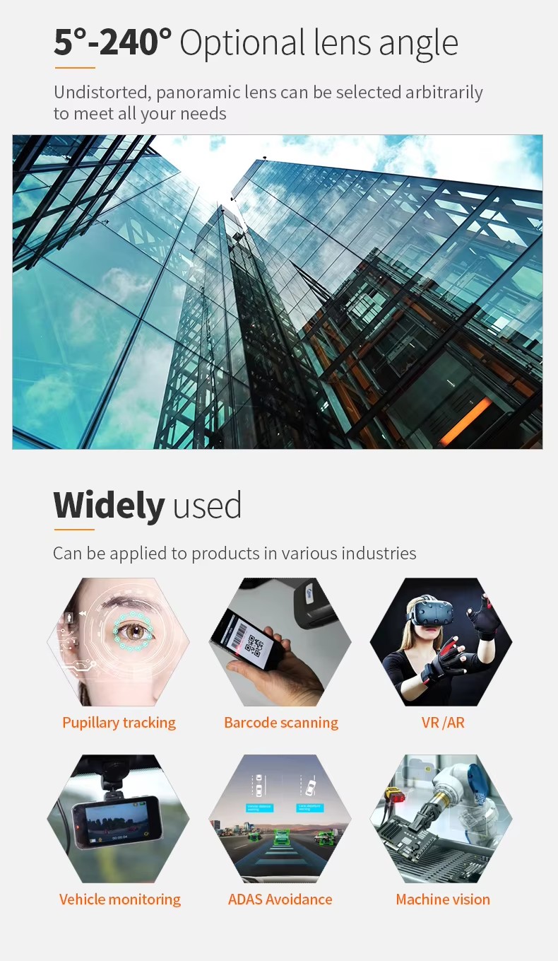 Features and Applications: Machine vision, Barcode scanning, Automotive electronics, Security monitoring system, High-speed photography system