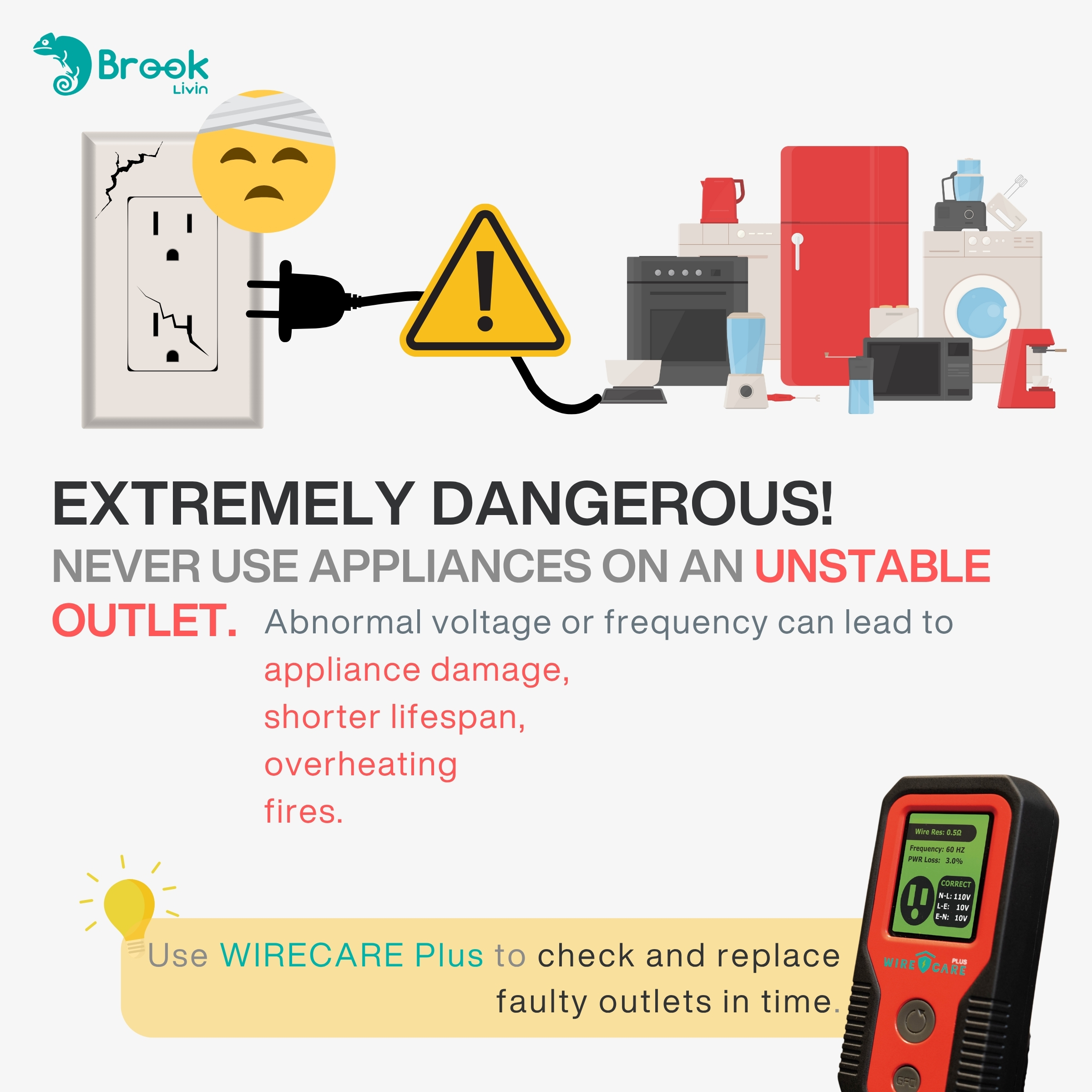 • Comprehensive Testing: Instantly test wall outlets, power strips, and extension cords.