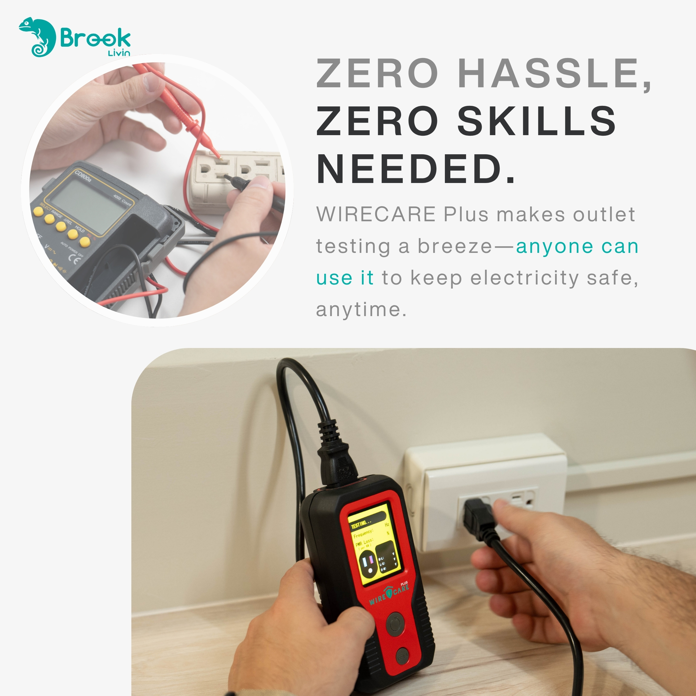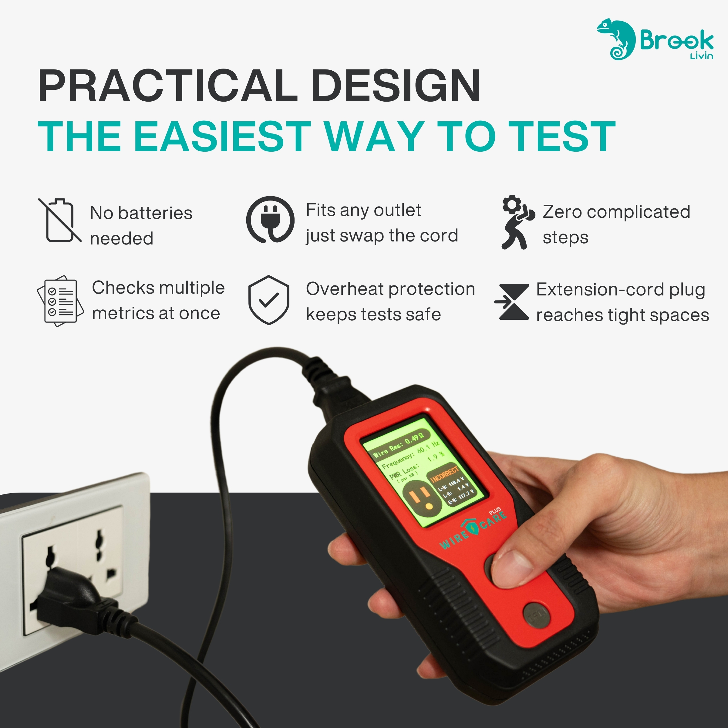 • Plug-and-Test Design: No batteries required, use anytime by plugging directly into a socket.