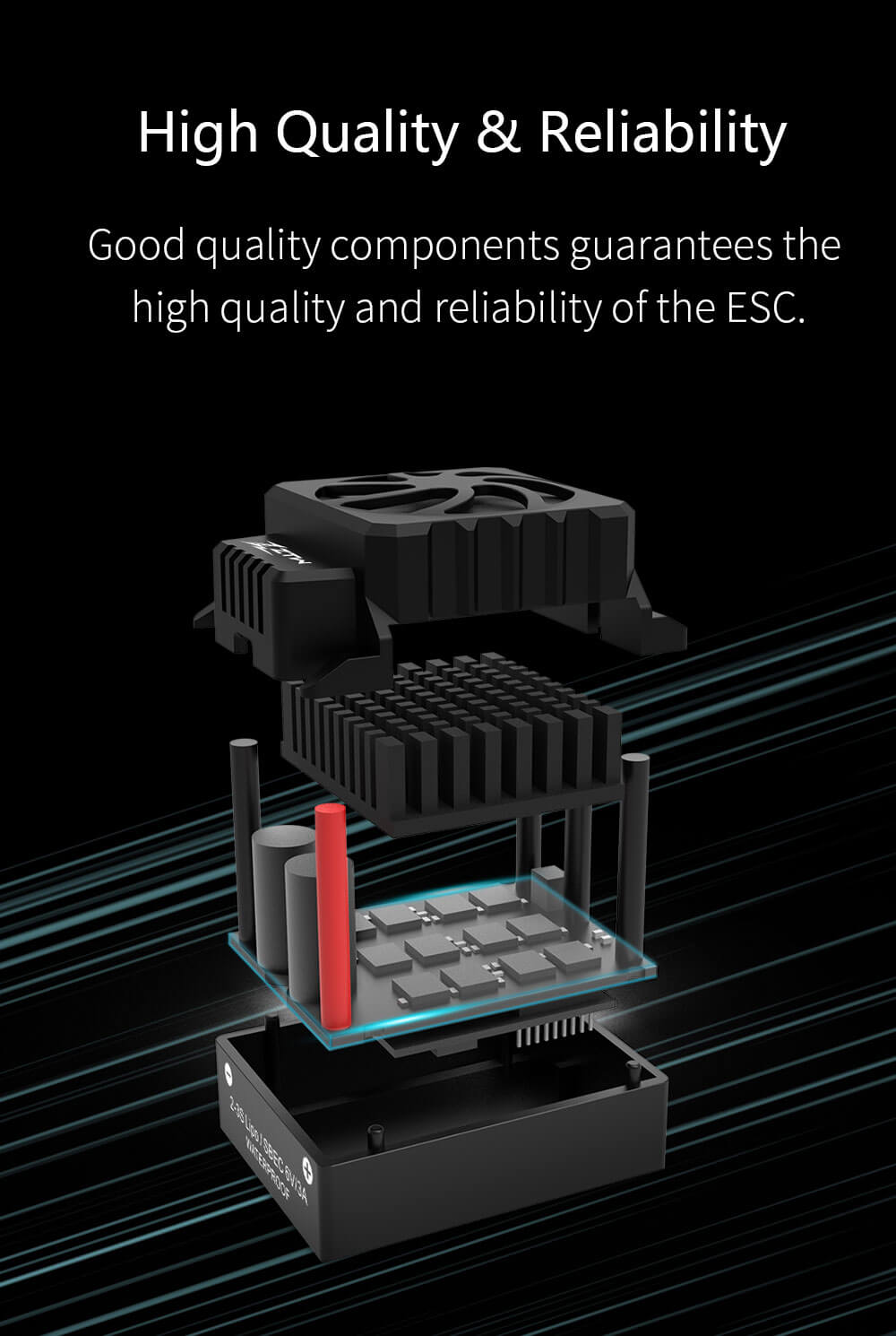 - Advanced Switching BEC (SBEC): Features a built-in 6V/3A Switching BEC that ensures stable, clean power for your receiver and servos, even under heavy load, preventing brownouts and ensuring consistent steering and control.