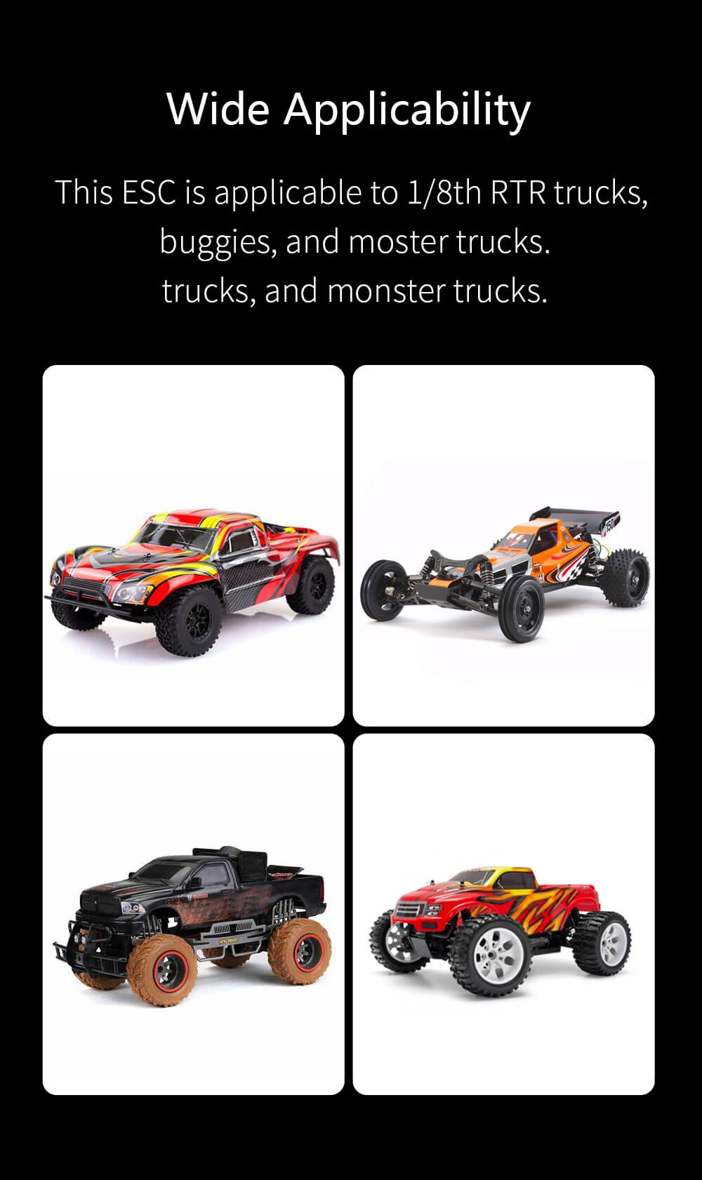 Compatible With: Ideal for 1/8 Scale RC Cars, Trucks, Buggies. Ready-to-Run (RTR) models requiring a 150A ESC upgrade.