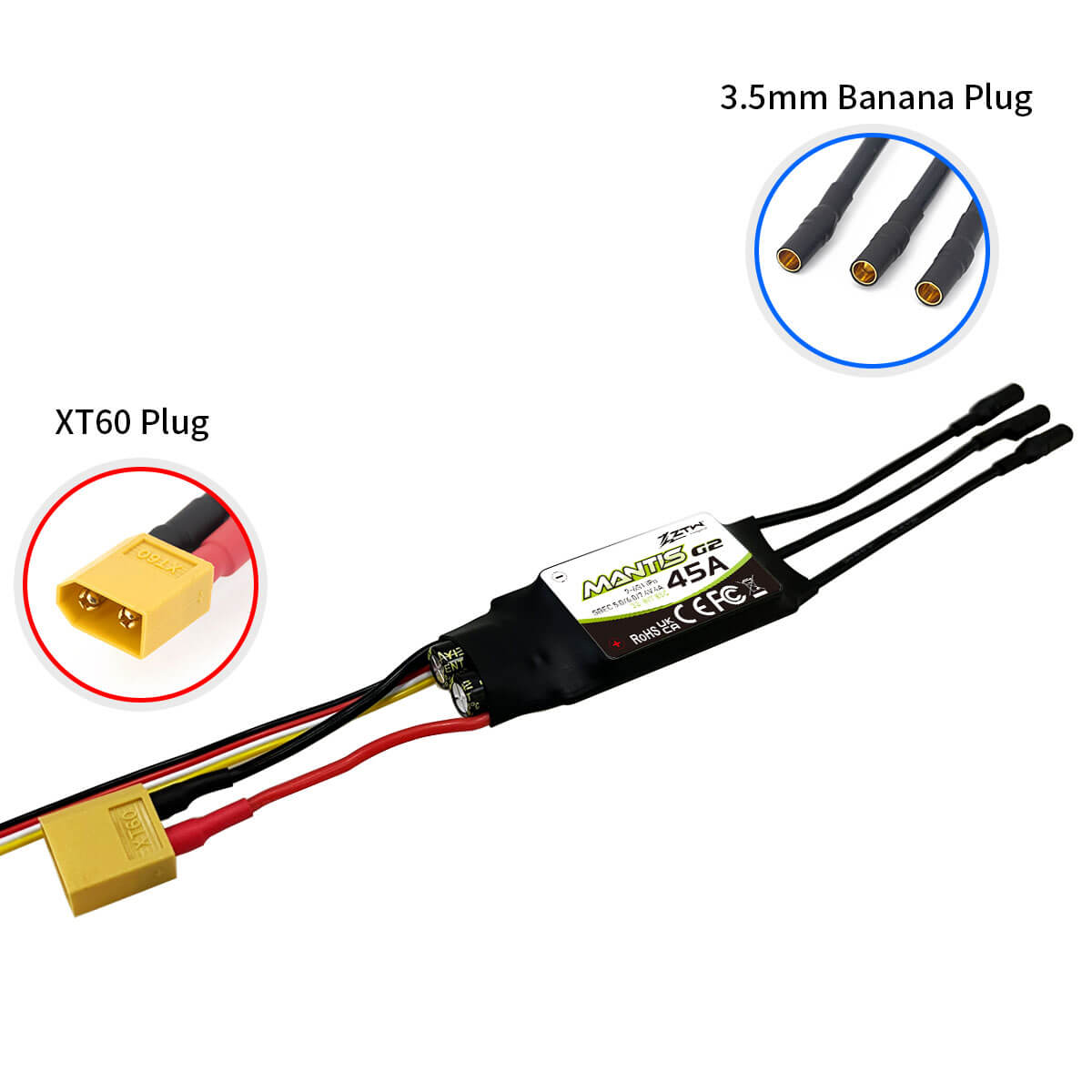 - Plug: XT60 for Battery Side/3.5mm Bullet for Motor Side