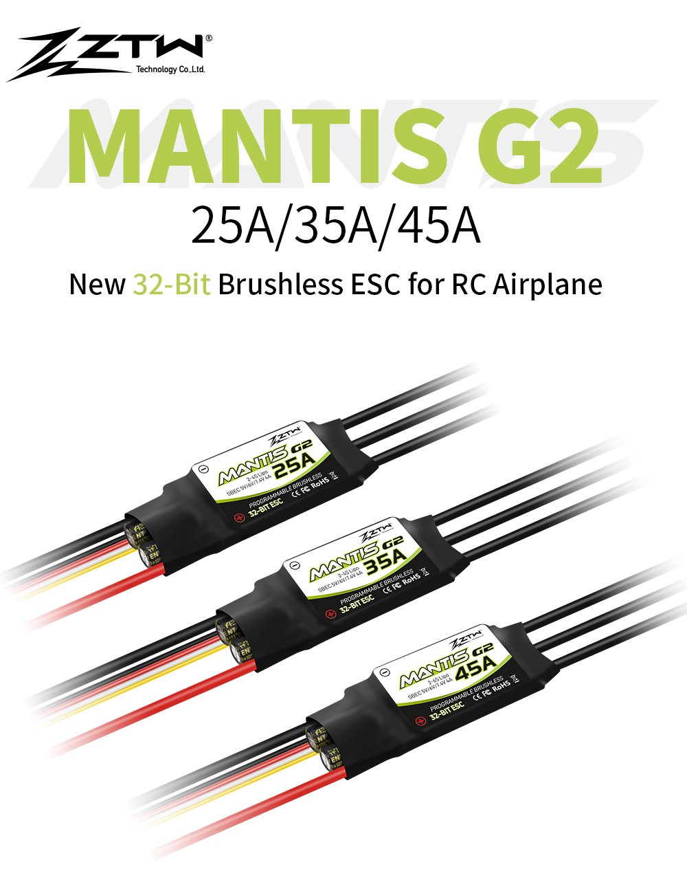 ZTW Mantis G2 45A ESC 2-6S SBEC 5V/6V/7.4V Adjustable 4A for RC Airplane Aircraft Fixed-Wing