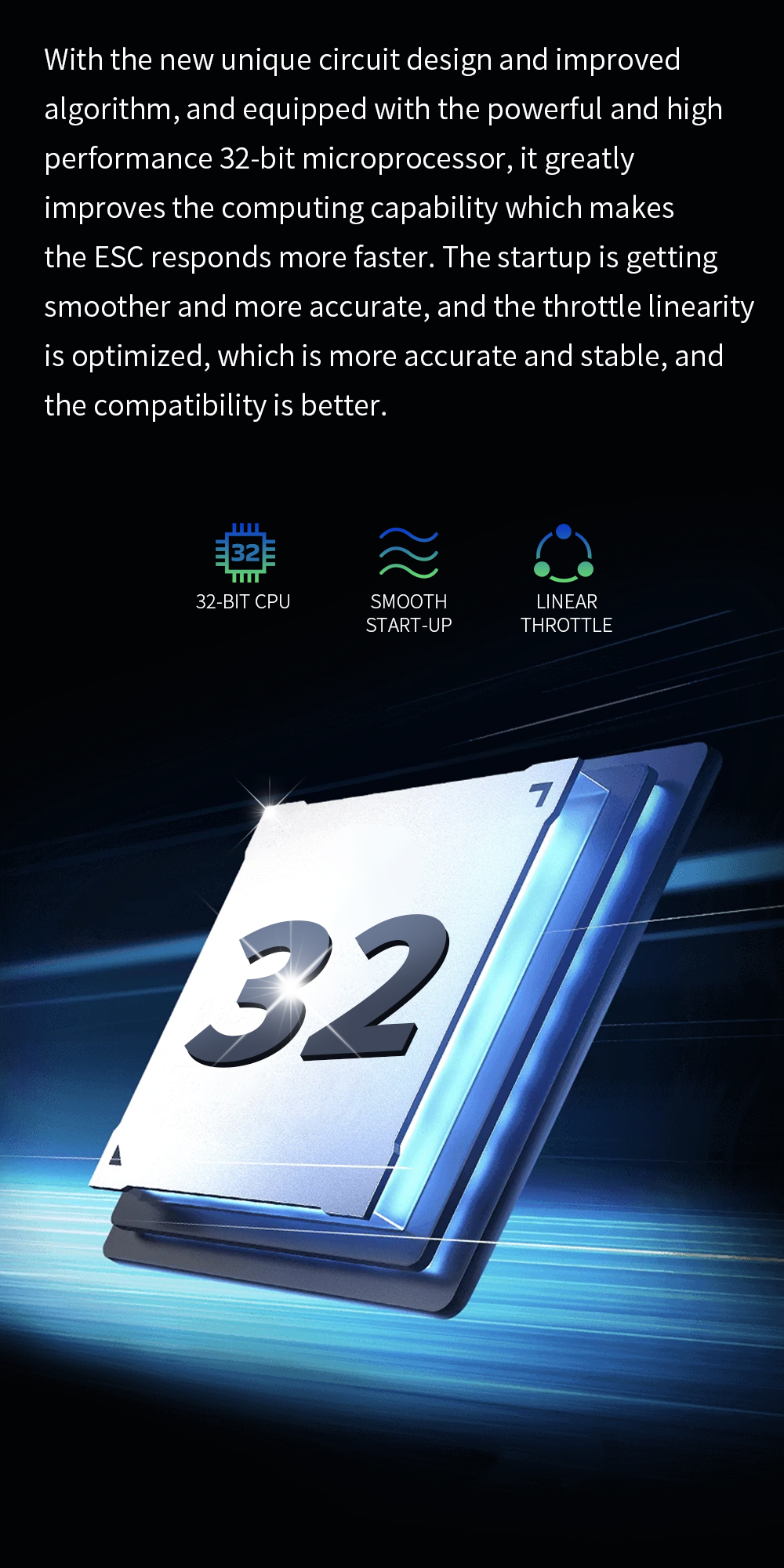 - Advanced 32-Bit Processor & Smooth Throttle: At the heart of this ESC is an advanced 32-bit processor that provides incredibly smooth, linear, and responsive throttle control across the entire power band. This results in seamless acceleration and precise handling for a superior flying experience.