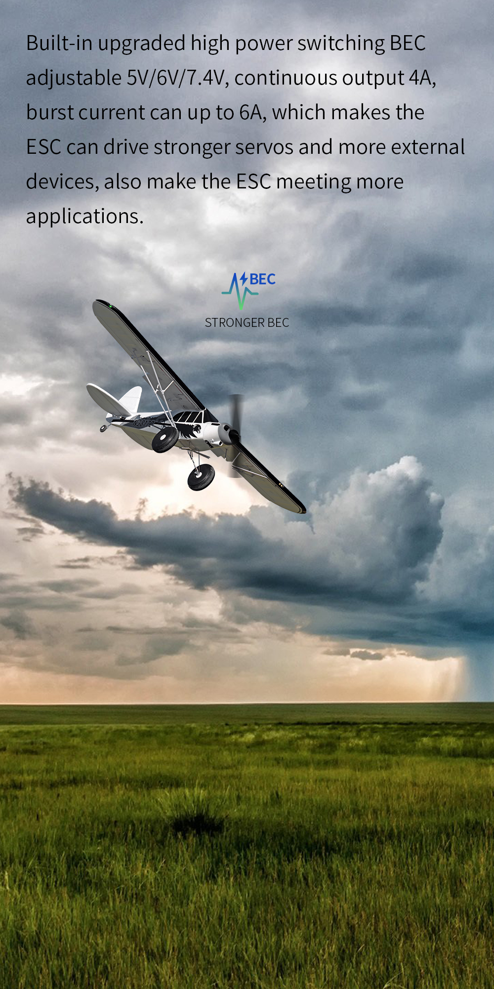 - BEC Output: 5V/6V/7.4V Adjustable /4A