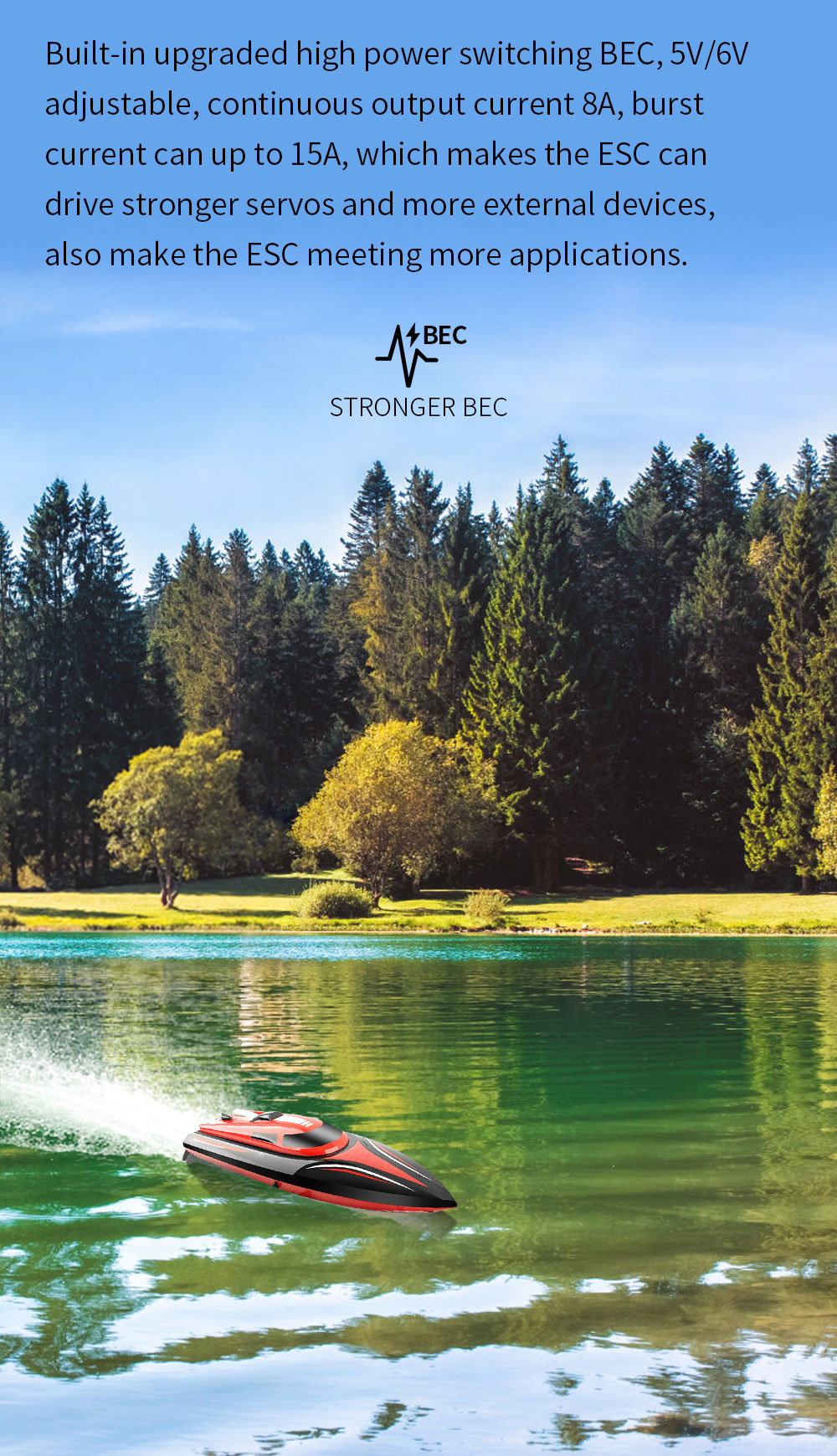 - Actual Bidirectional Operation with Reverse: Unlock full maneuverability on the water. This ESC provides genuine forward and reverse thrust, giving you critical control for braking, backing out of tight spots, and precise docking. It offers seamless compatibility with standard radio systems for instant reverse activation.