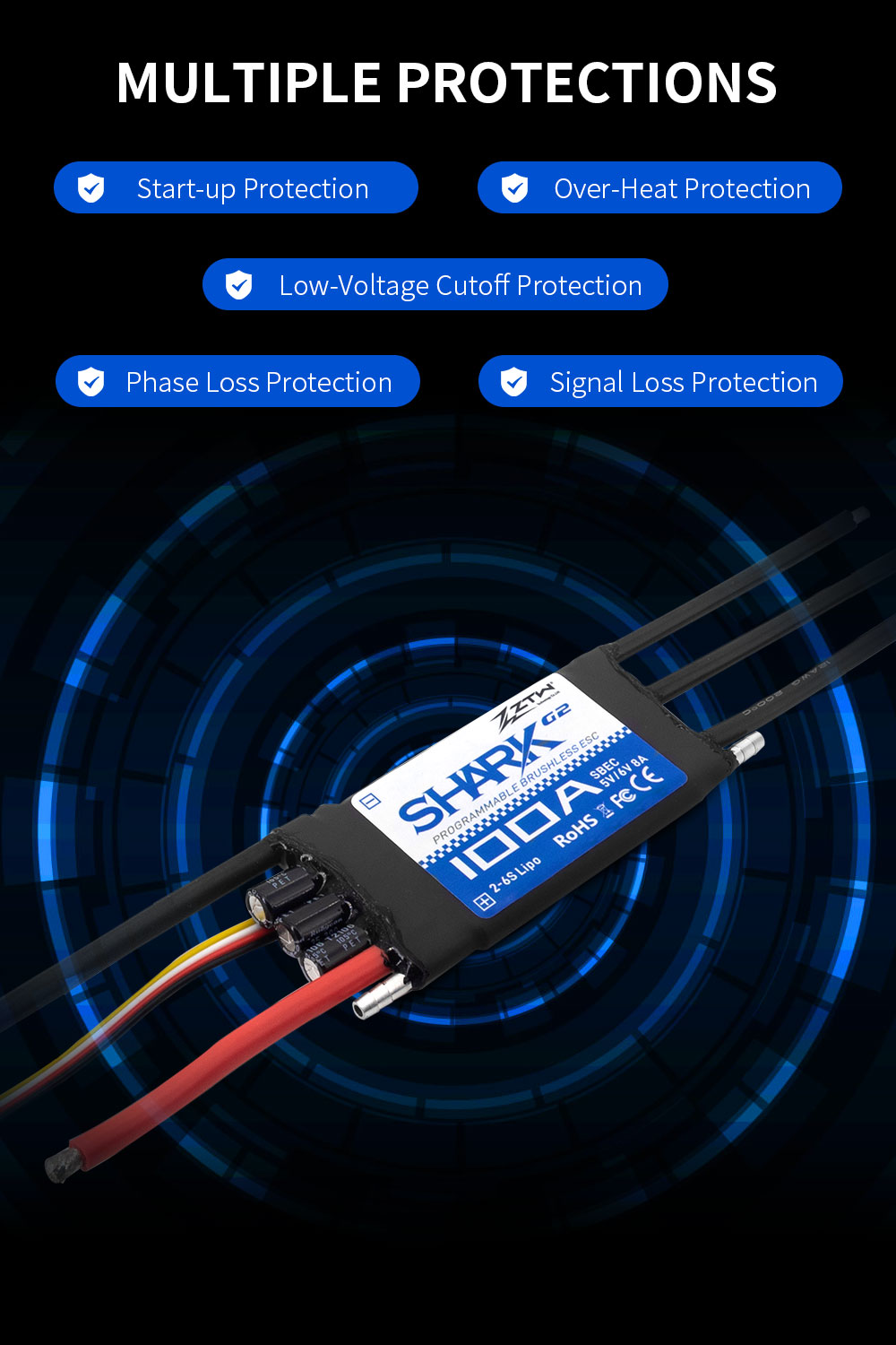ZTW Shark G2 120A ESC 2-6S SBEC 5V/6V 8A Bidirectional Waterproof Speed Control for RC Boat Marine