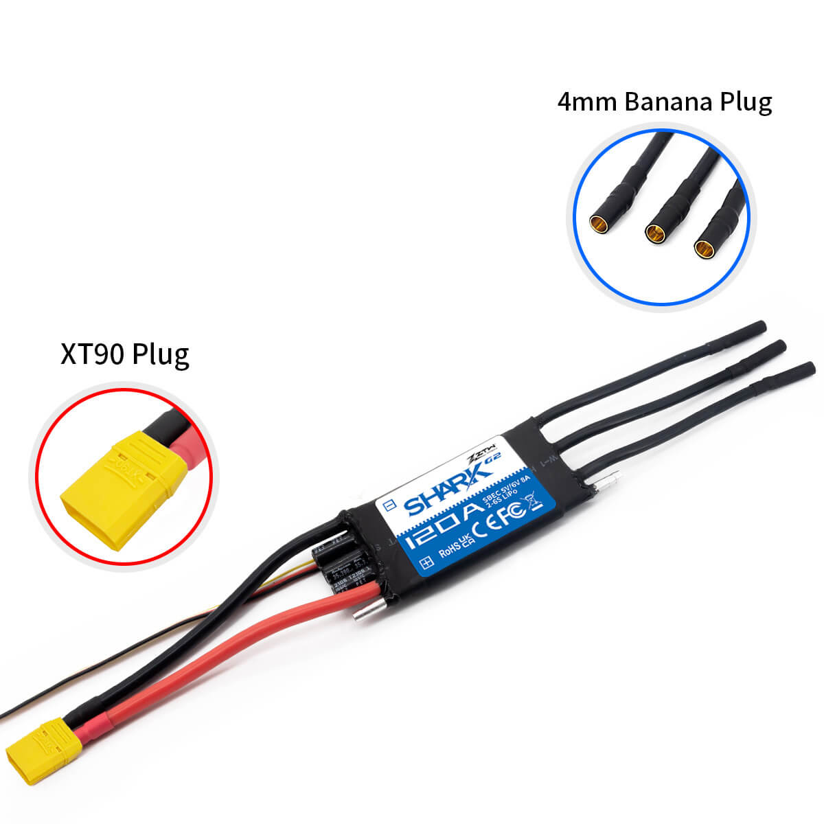 - Plug: XT90 for battery side/ 4.0mm Banana for motor side
