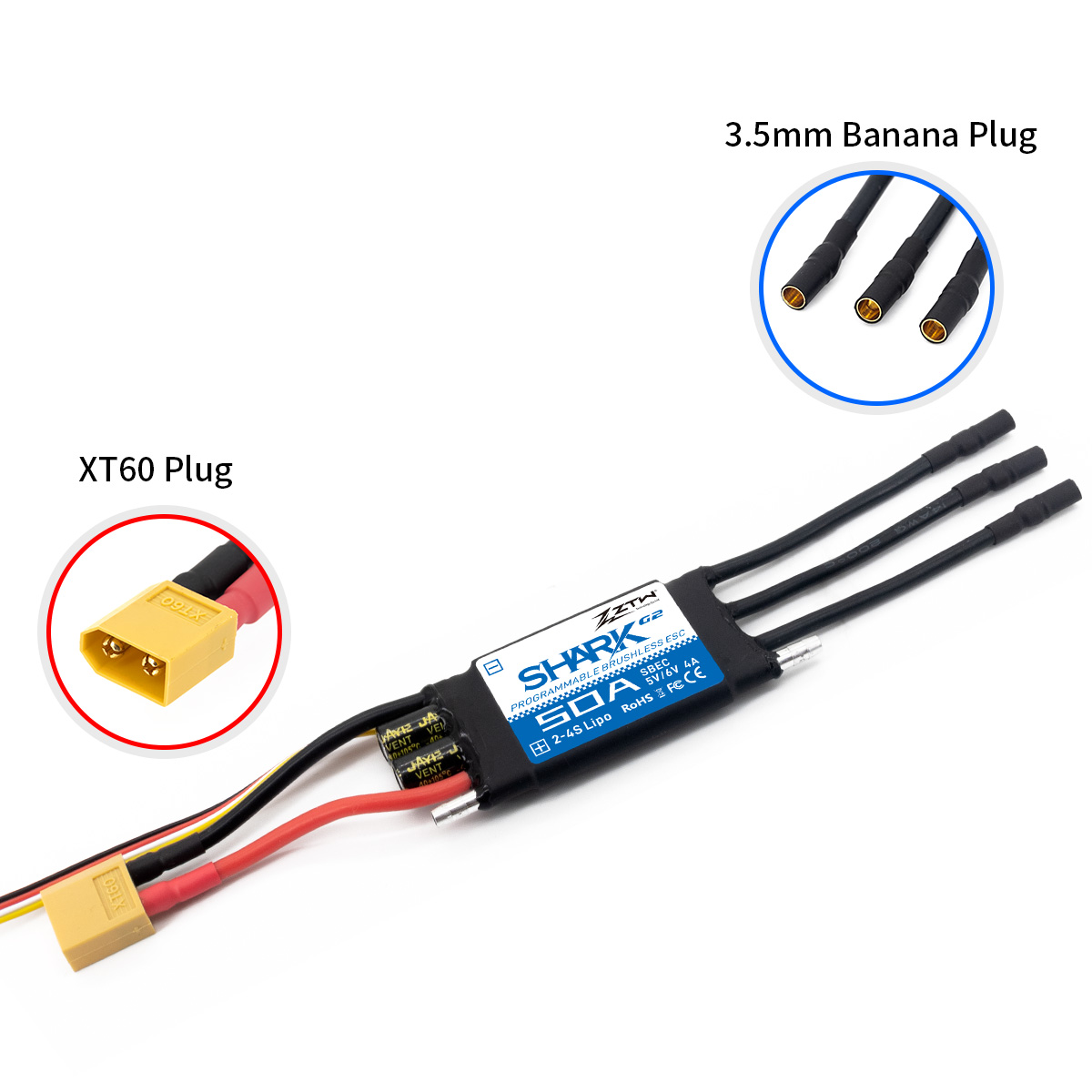 - Plug: XT60 for battery side/ 3.5mm Banana for motor side
