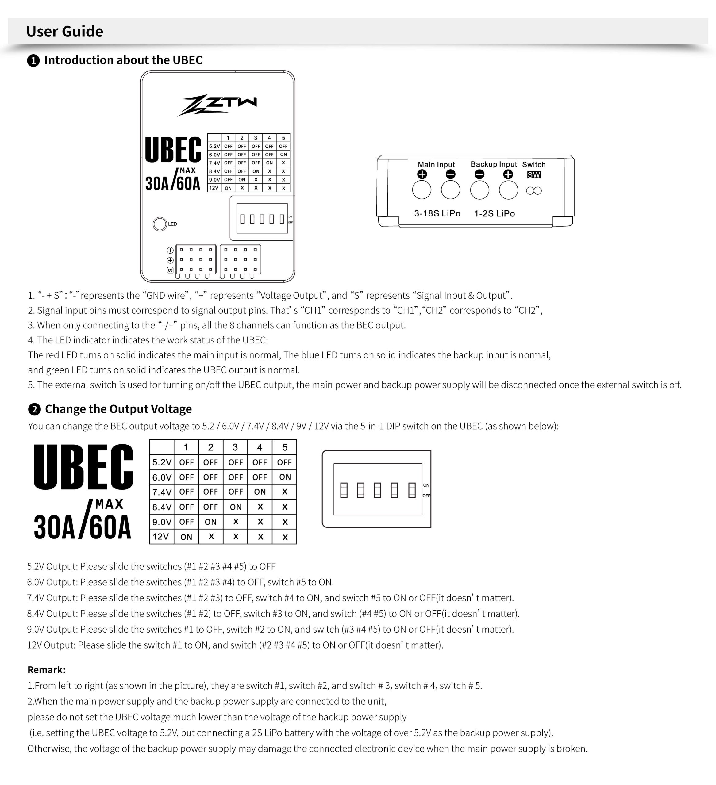 ZTW UBEC 30A HV 3-18S 5.2V-12V External BEC for RC Airplane Fixed-Wing Helicopter FPV Drone